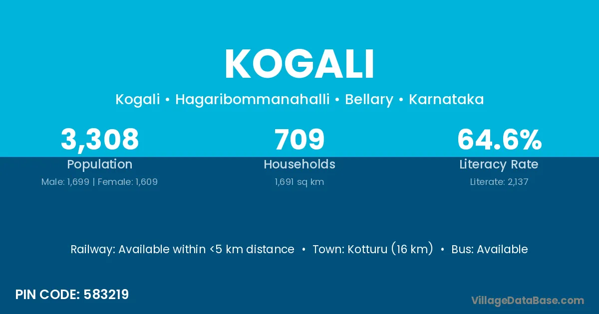 Kotturu (16 km) is the nearest town to Kogali village for major economic activities and is located approximately 16 km away.