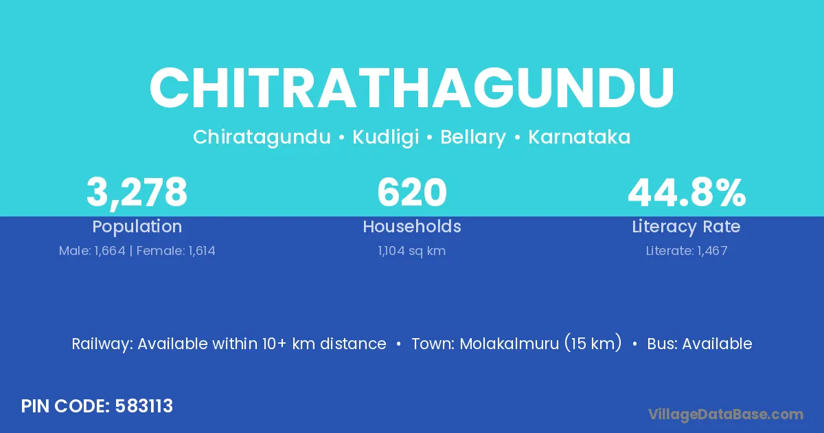 Molakalmuru (15 km) is the nearest town to Chitrathagundu village for major economic activities and is located approximately 15 km away.
