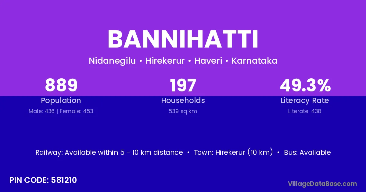 According to Census 2011 information, the village code of Bannihatti village is 583115.
