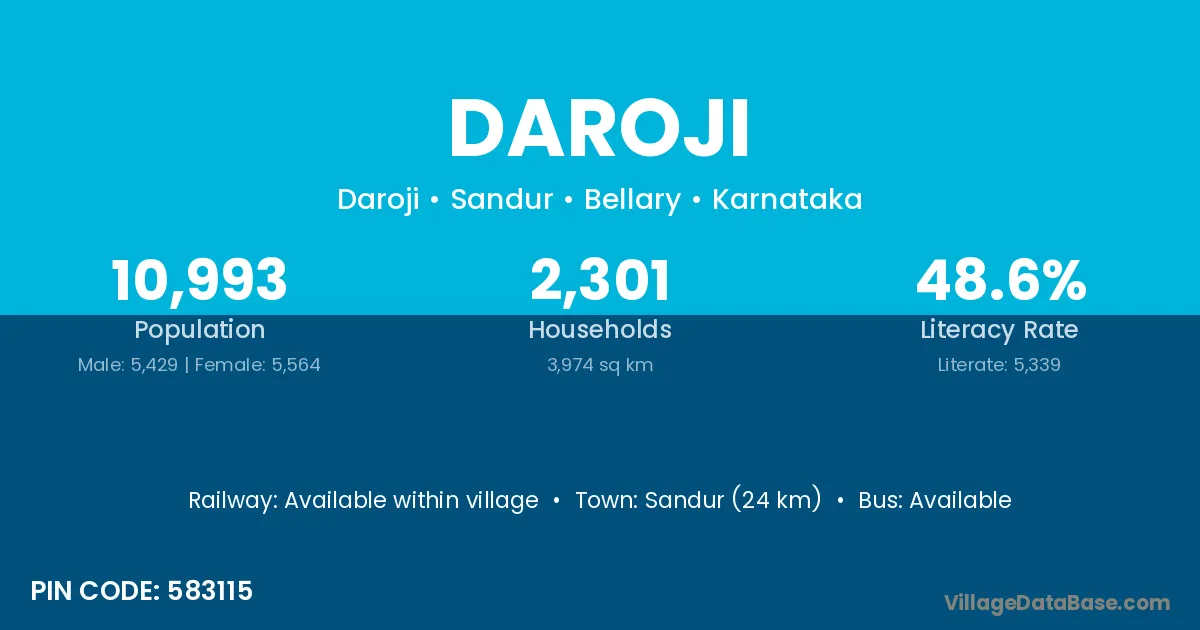 Sandur (24 km) is the nearest town to Daroji village for major economic activities and is located approximately 24 km away.