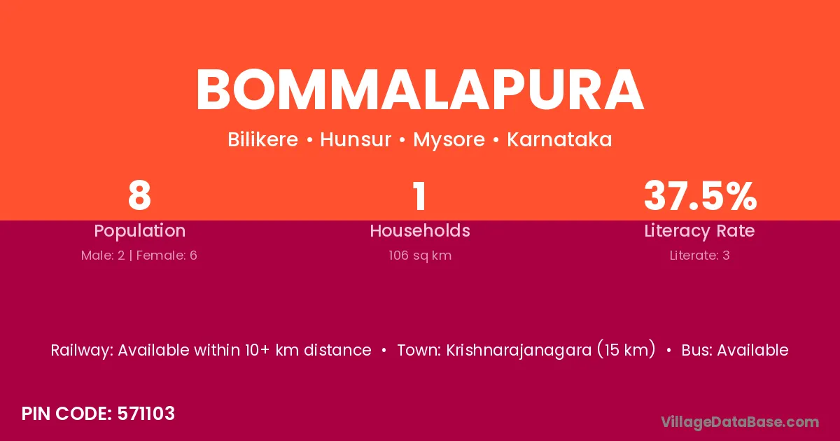 Siruguppa (25 km) is the nearest town to Bommalapura village for major economic activities and is located approximately 25 km away.