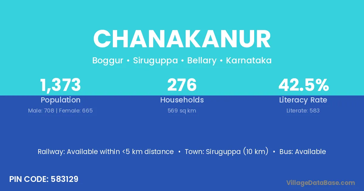 Chanakanur village has a total population of 1,373 people, of which 708 are males and 665 are females.