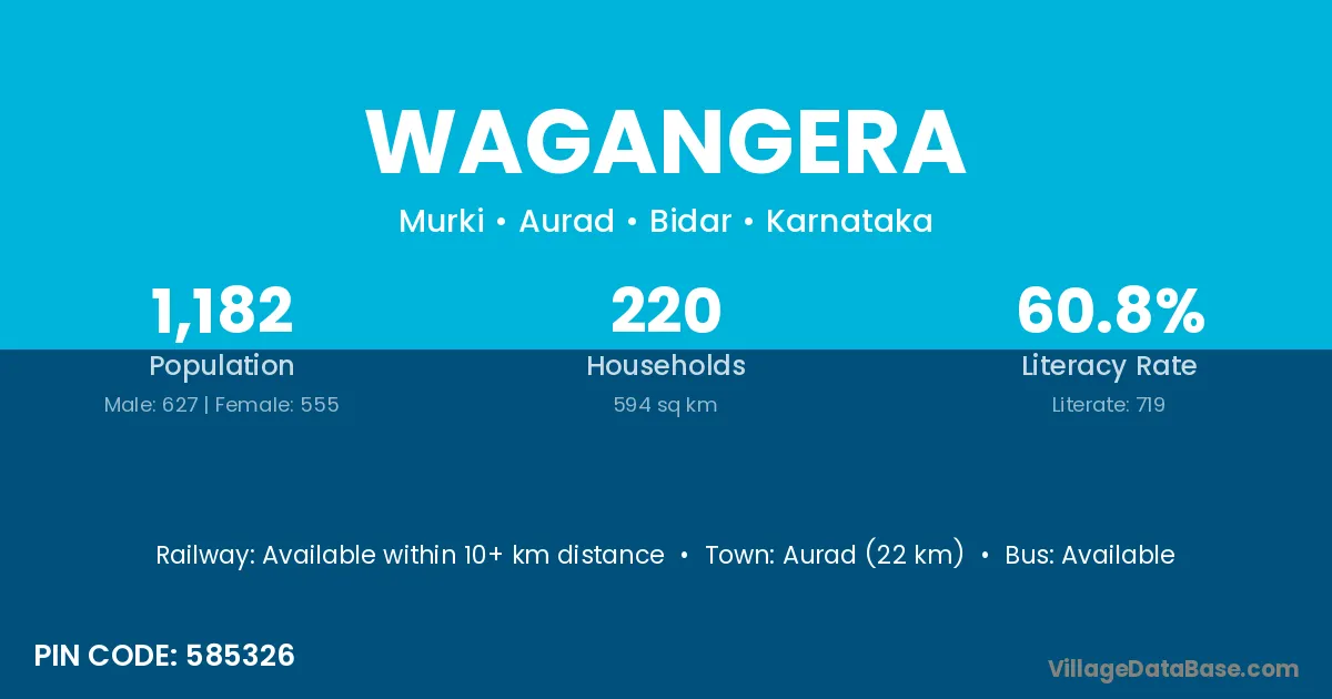 Aurad (22 km) is the nearest town to Wagangera village for major economic activities and is located approximately 22 km away.