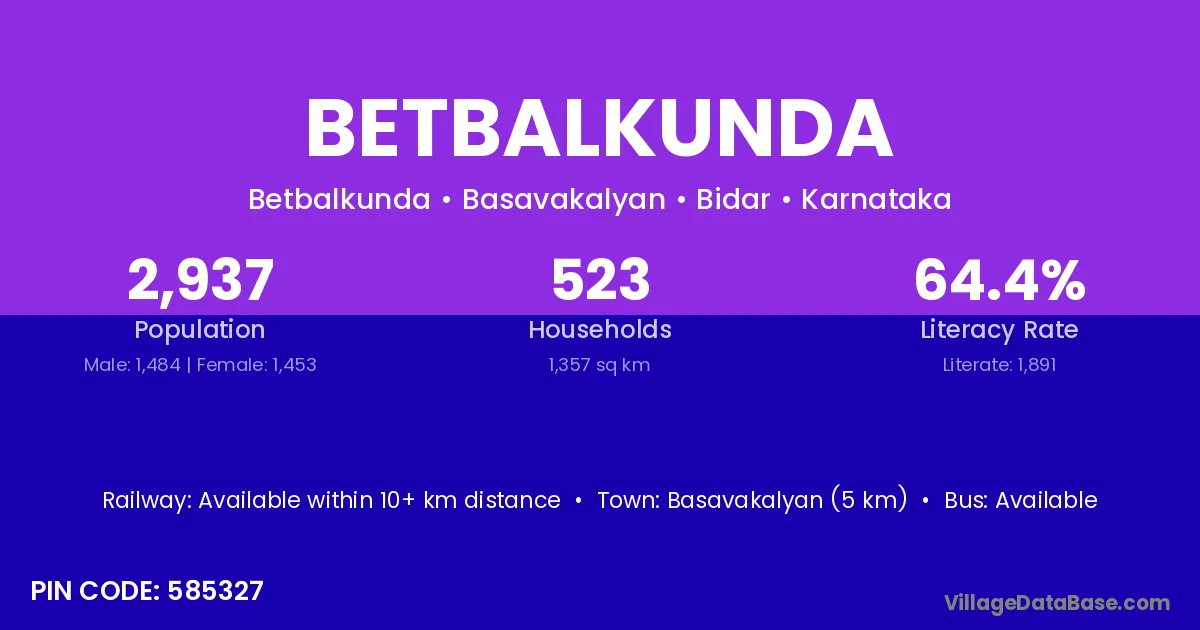 Basavakalyan (5 km) is the nearest town to Betbalkunda village for major economic activities and is located approximately 5 km away.