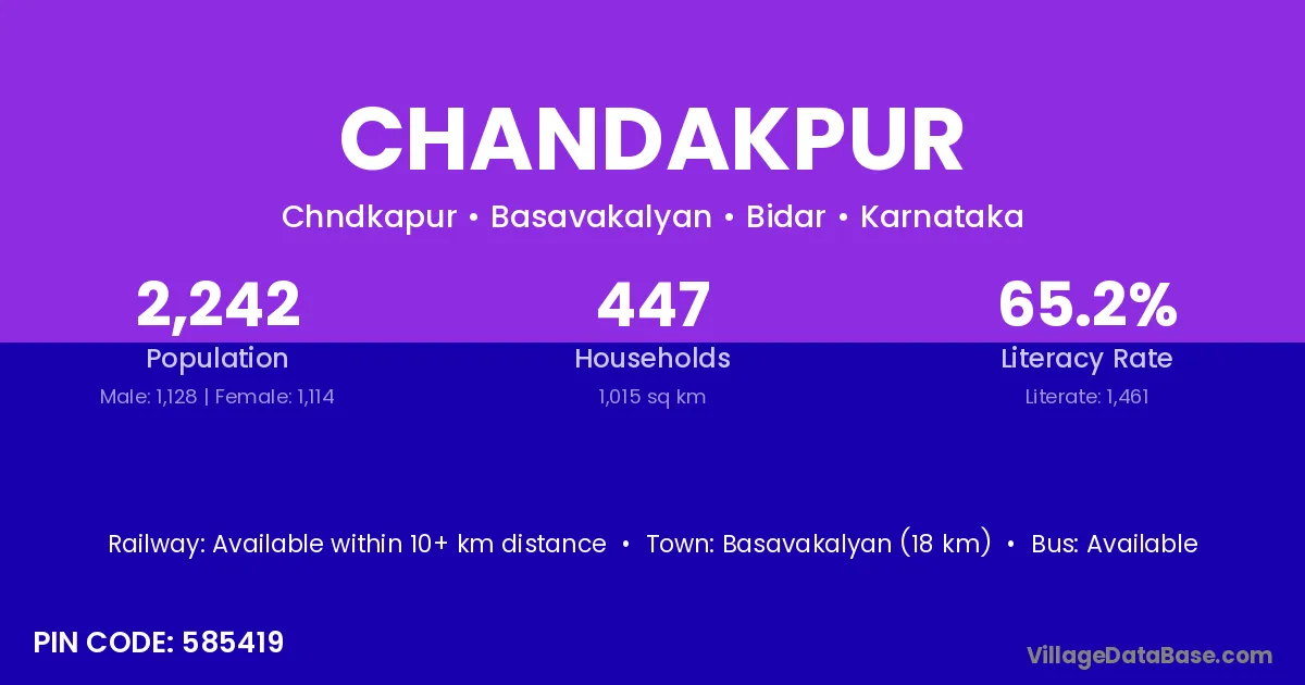 Basavakalyan (18 km) is the nearest town to Chandakpur village for major economic activities and is located approximately 18 km away.