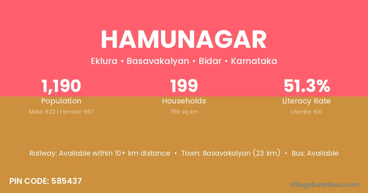 Basavakalyan (23 km) is the nearest town to Hamunagar village for major economic activities and is located approximately 23 km away.