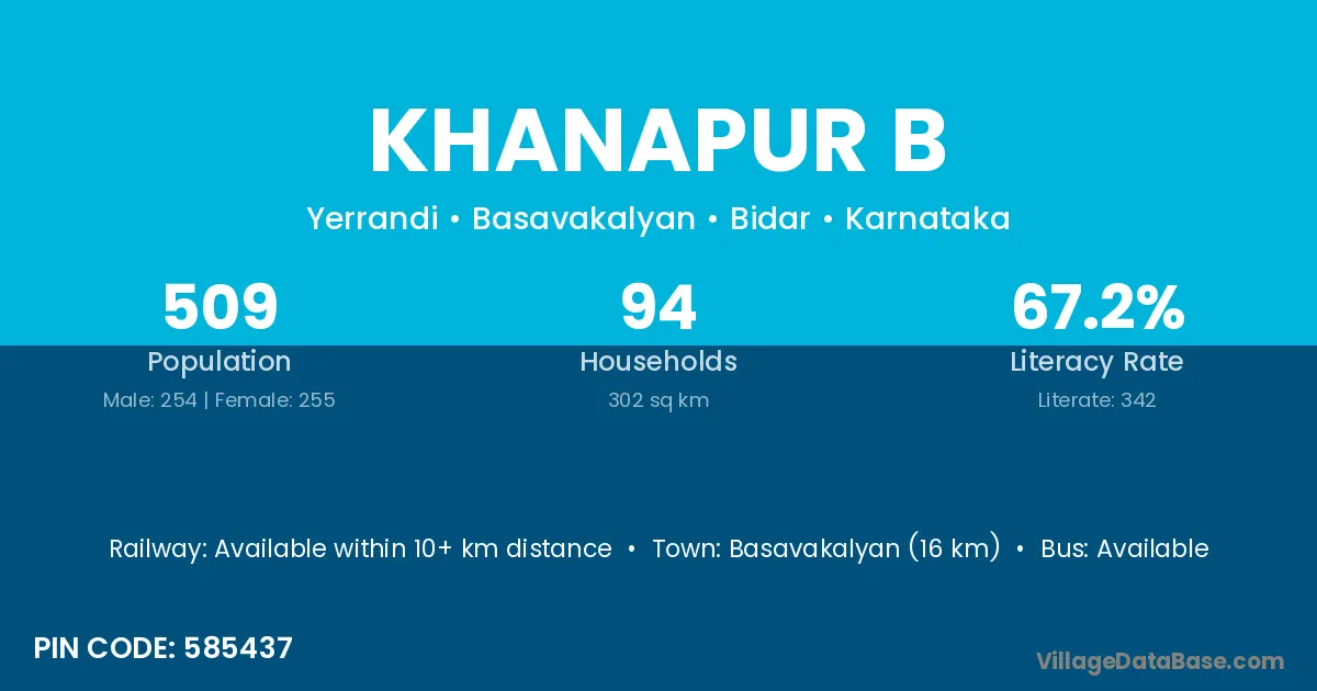 Basavakalyan (16 km) is the nearest town to Khanapur B village for major economic activities and is located approximately 16 km away.