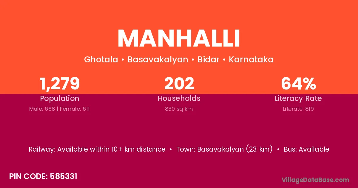 Basavakalyan (23 km) is the nearest town to Manhalli village for major economic activities and is located approximately 23 km away.