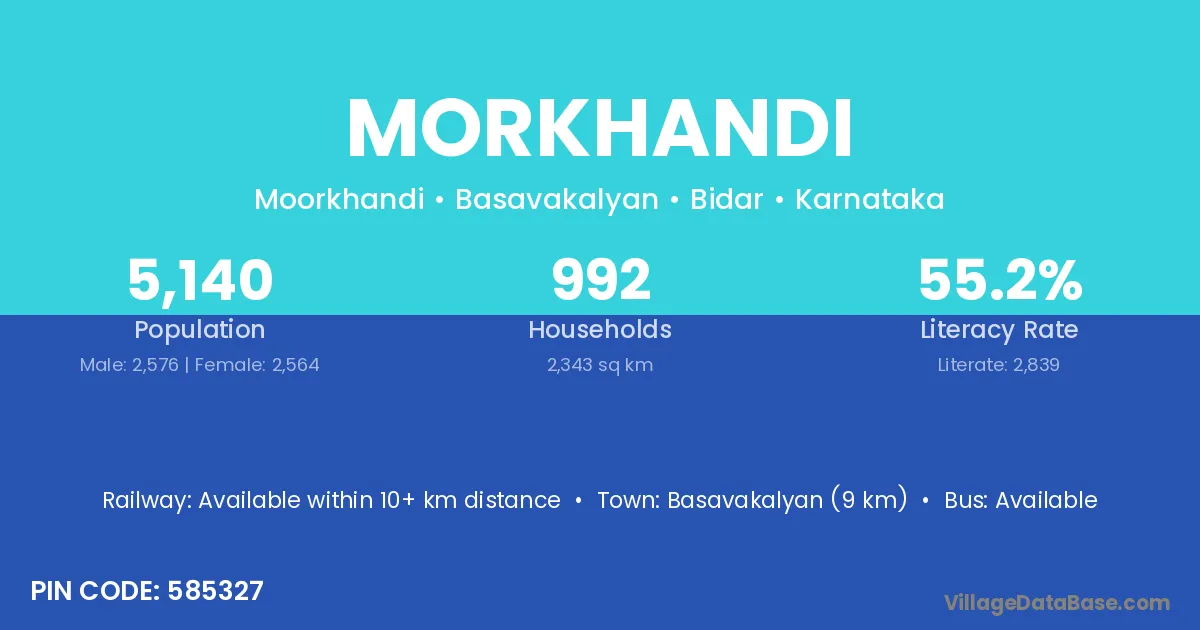 Basavakalyan (9 km) is the nearest town to Morkhandi village for major economic activities and is located approximately 9 km away.
