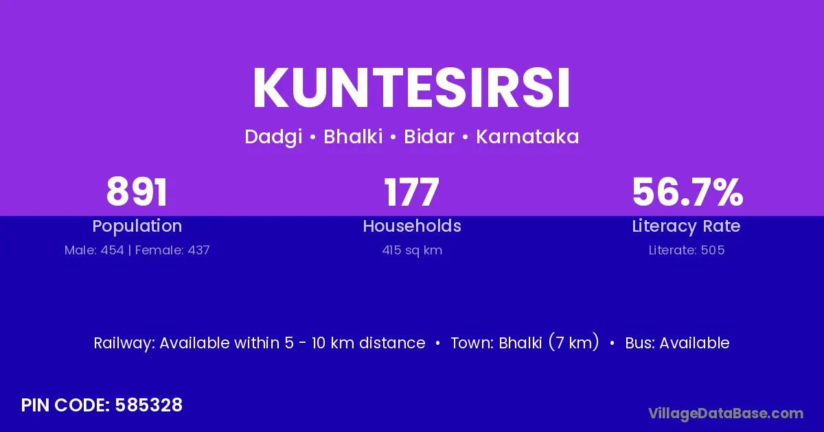 Bhalki (7 km) is the nearest town to Kuntesirsi village for major economic activities and is located approximately 7 km away.