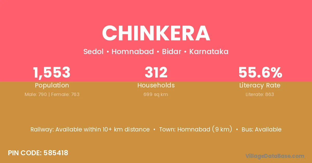 Homnabad (9 km) is the nearest town to Chinkera village for major economic activities and is located approximately 9 km away.