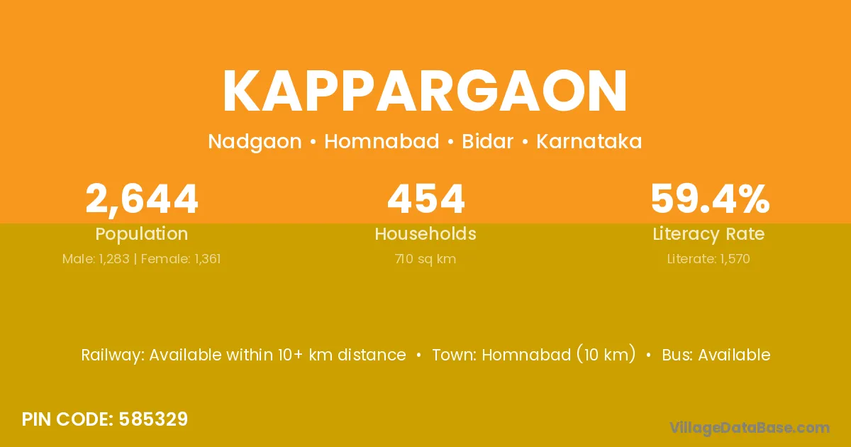 Homnabad (10 km) is the nearest town to Kappargaon village for major economic activities and is located approximately 10 km away.