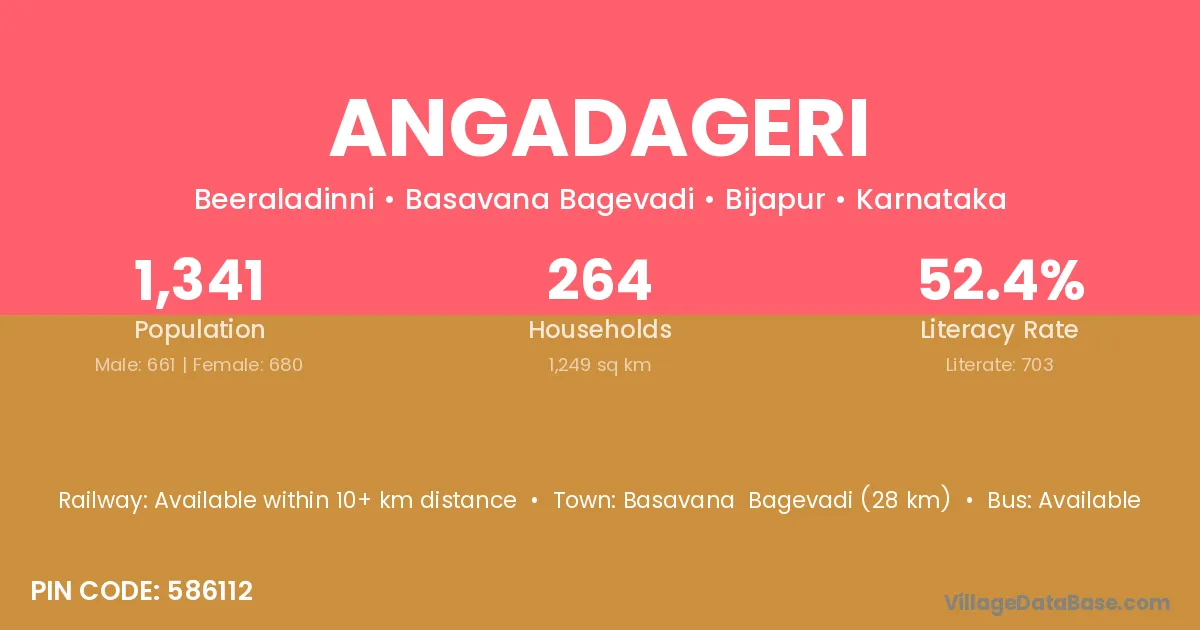 Basavana Bagevadi (28 km) is the nearest town to Angadageri village for major economic activities and is located approximately 28 km away.