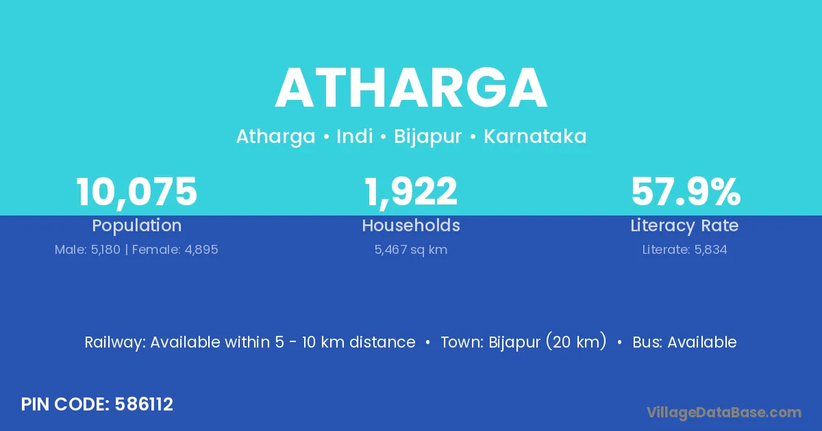 Bijapur (20 km) is the nearest town to Atharga village for major economic activities and is located approximately 20 km away.