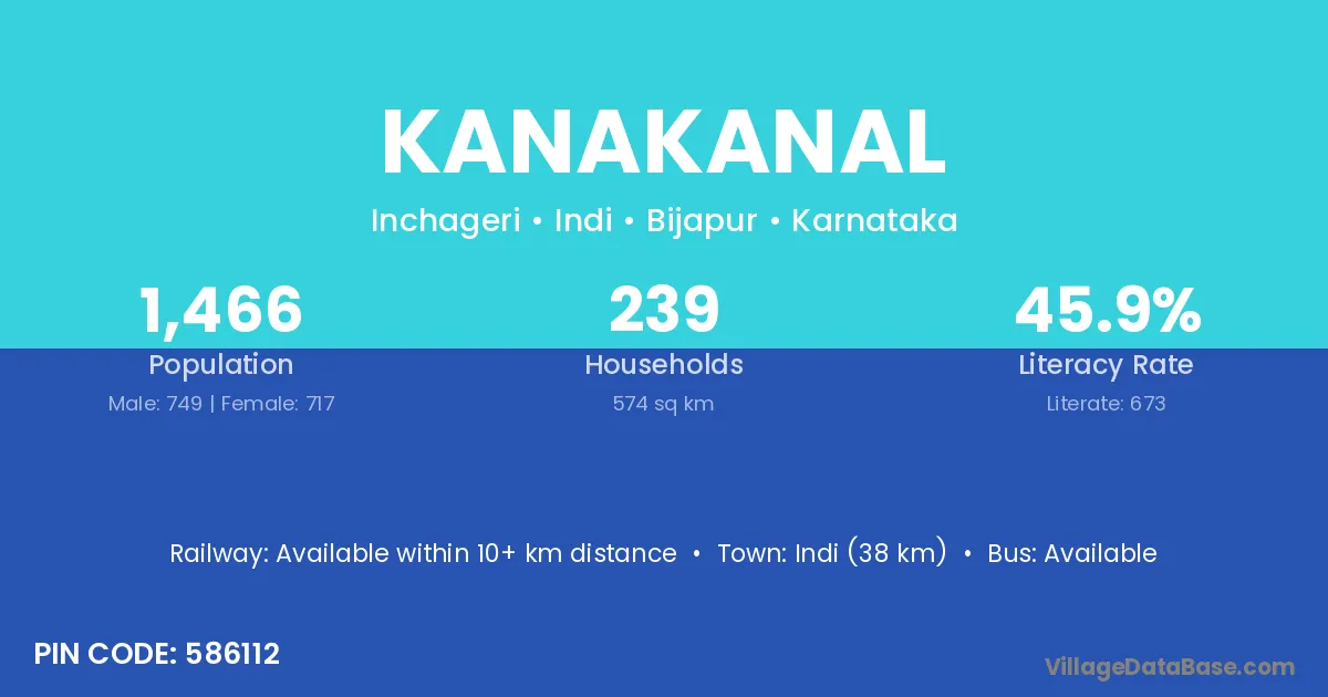Indi (38 km) is the nearest town to Kanakanal village for major economic activities and is located approximately 38 km away.