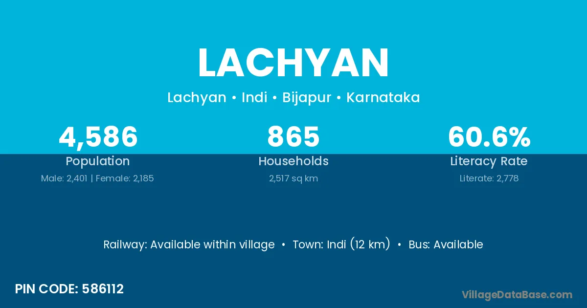 Indi (12 km) is the nearest town to Lachyan village for major economic activities and is located approximately 12 km away.