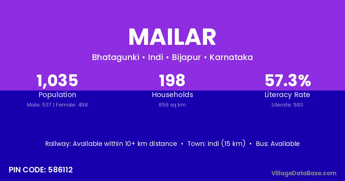 Indi (15 km) is the nearest town to Mailar village for major economic activities and is located approximately 15 km away.