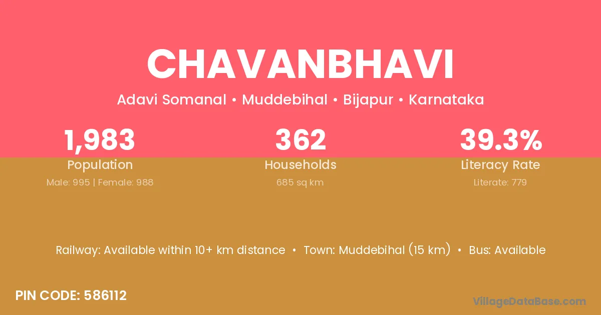 Chavanbhavi village has a total population of 1,983 people, of which 995 are males and 988 are females.
