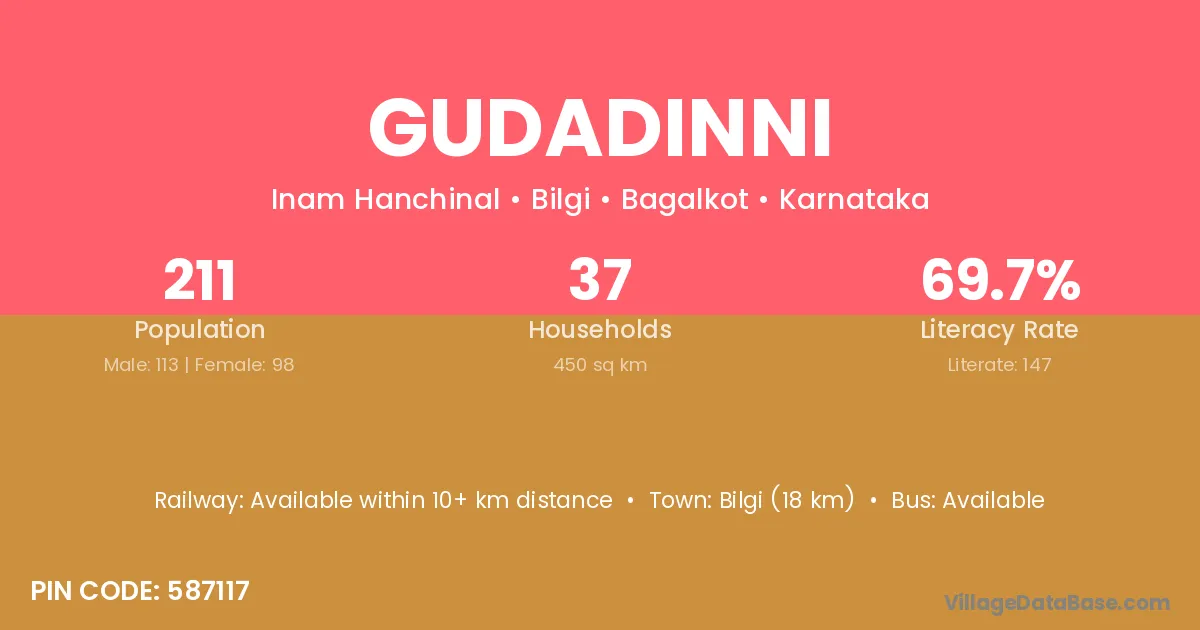 Muddebihal (22 km) is the nearest town to Gudadinni village for major economic activities and is located approximately 22 km away.