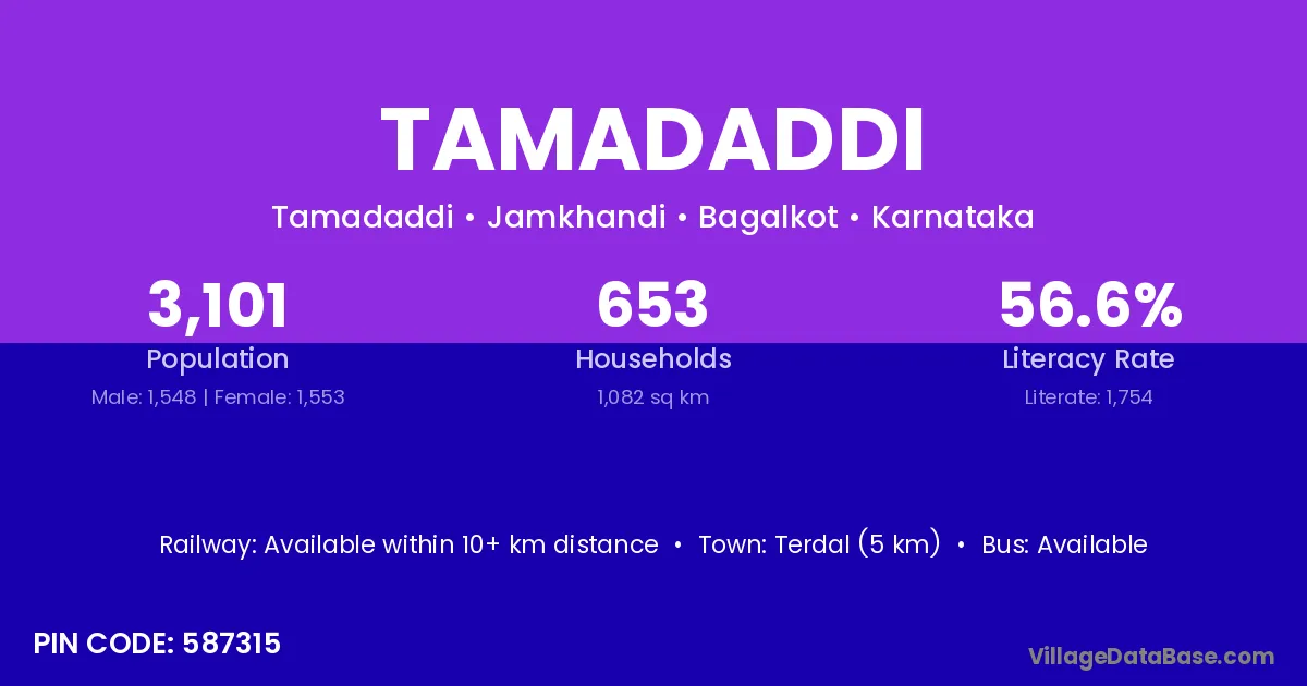 Talikota (10 km) is the nearest town to Tamadaddi village for major economic activities and is located approximately 10 km away.