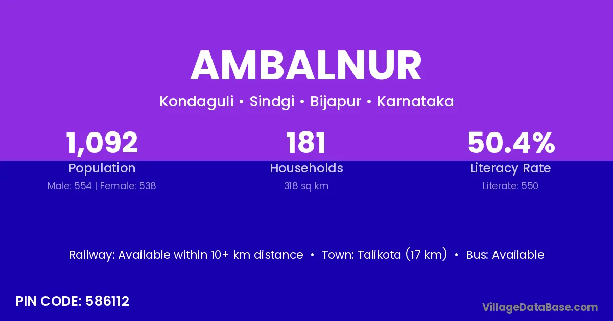 Talikota (17 km) is the nearest town to Ambalnur village for major economic activities and is located approximately 17 km away.