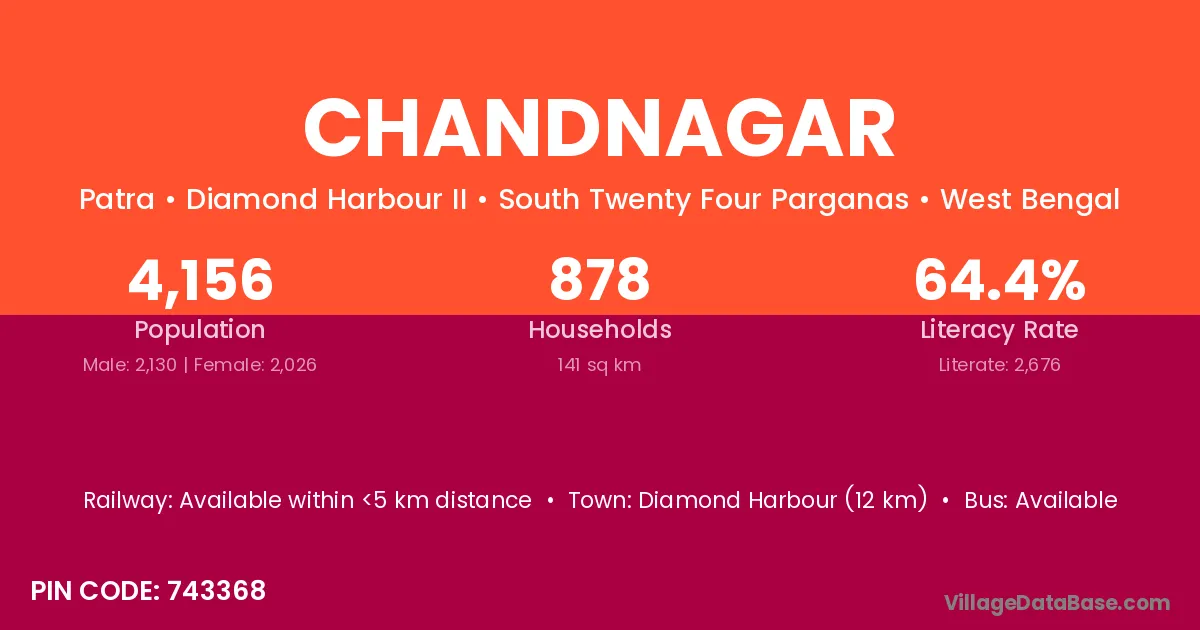 The literacy rate of Chandnagar village is 63.66%. Male literacy stands at 77.49% and female literacy at 47.68%.