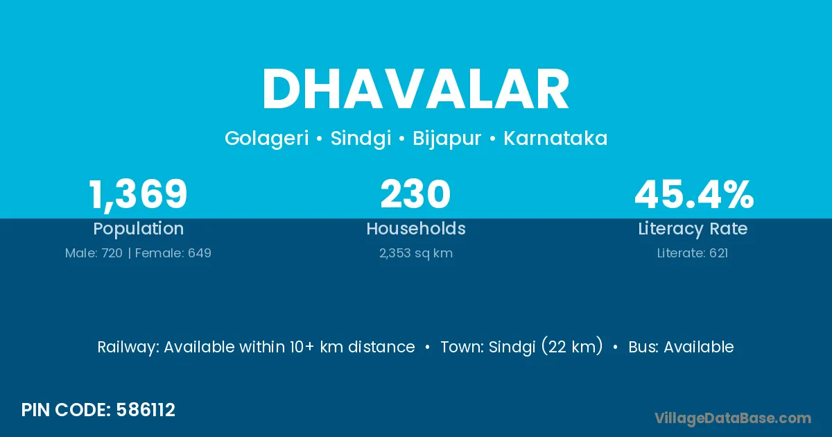 Sindgi (22 km) is the nearest town to Dhavalar village for major economic activities and is located approximately 22 km away.