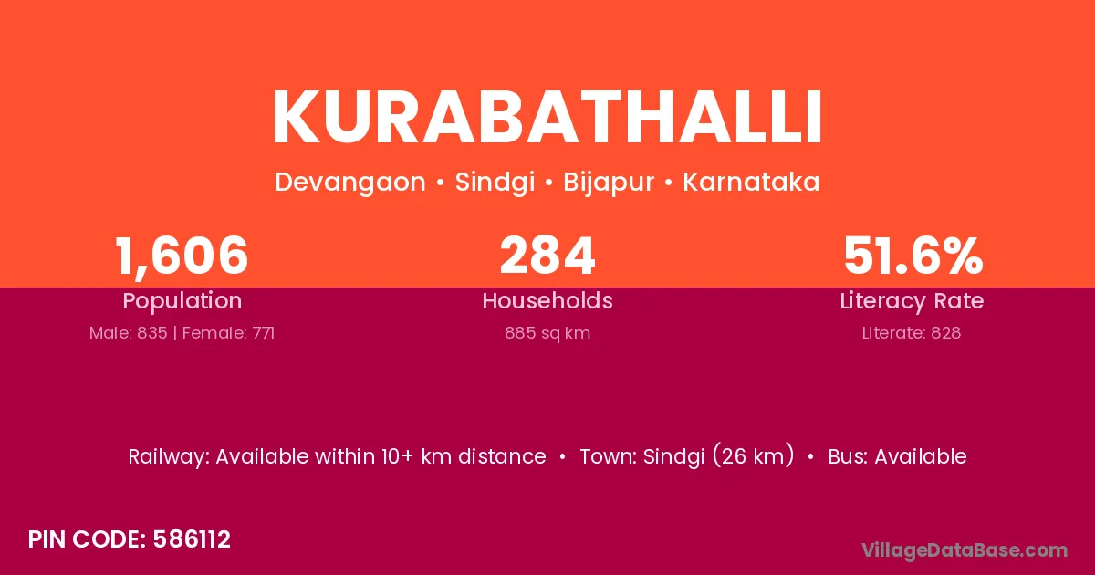 Sindgi (26 km) is the nearest town to Kurabathalli village for major economic activities and is located approximately 26 km away.