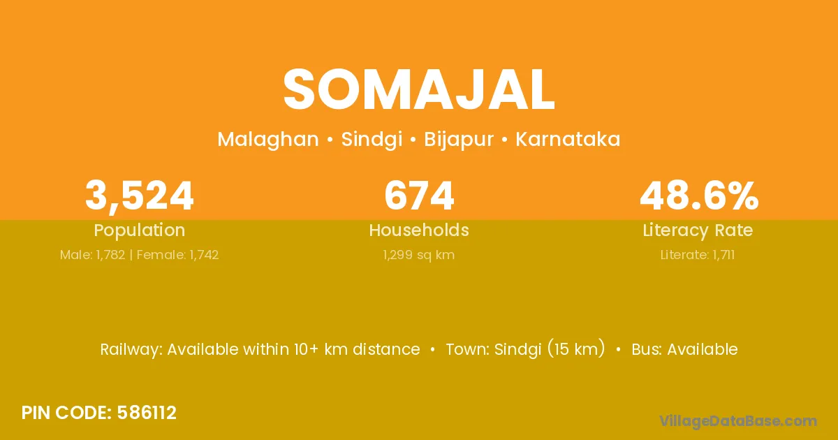 Sindgi (15 km) is the nearest town to Somajal village for major economic activities and is located approximately 15 km away.