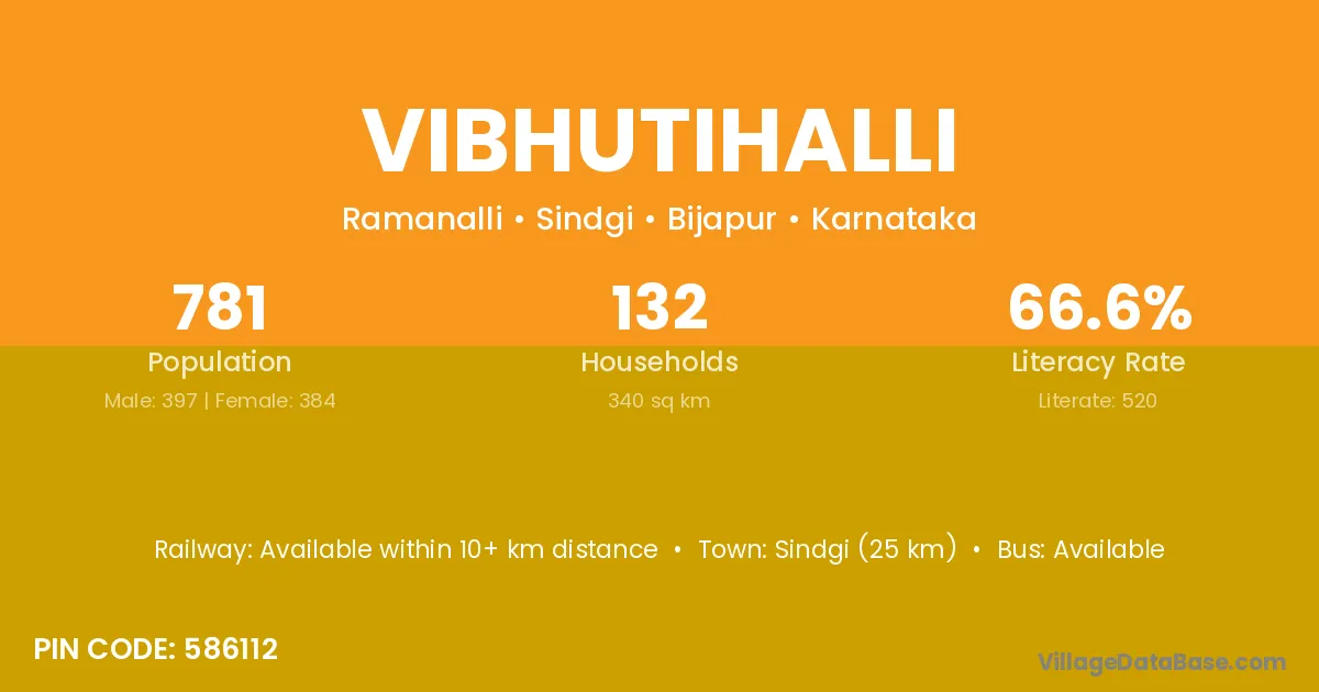 Sindgi (25 km) is the nearest town to Vibhutihalli village for major economic activities and is located approximately 25 km away.