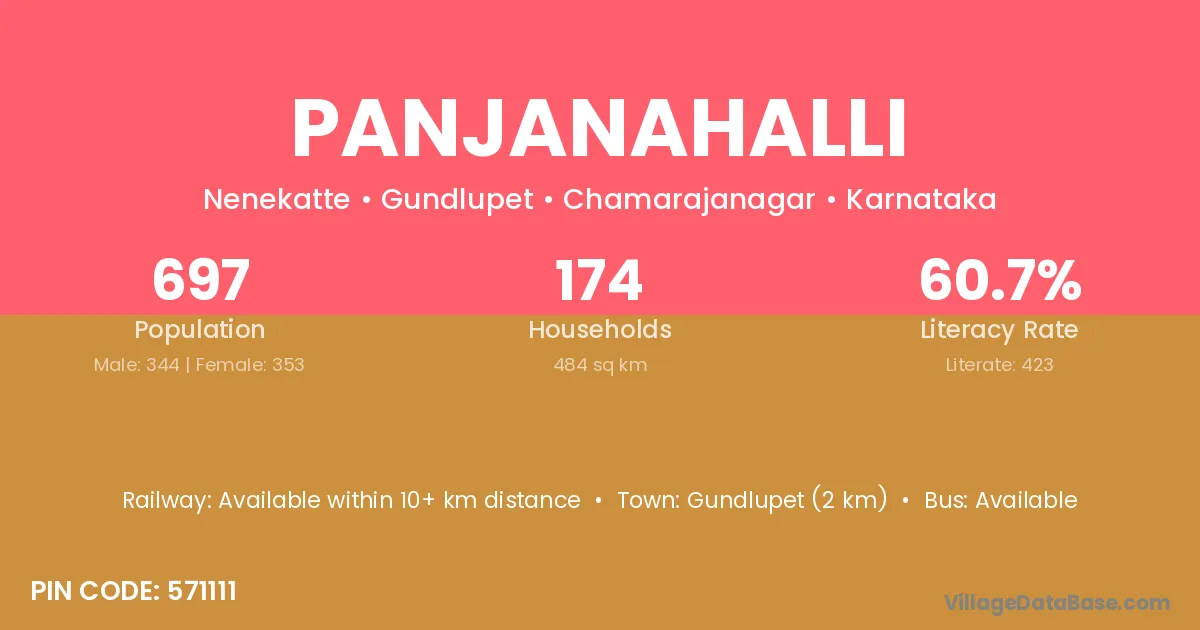 Gundlupet (2 km) is the nearest town to Panjanahalli village for major economic activities and is located approximately 2 km away.