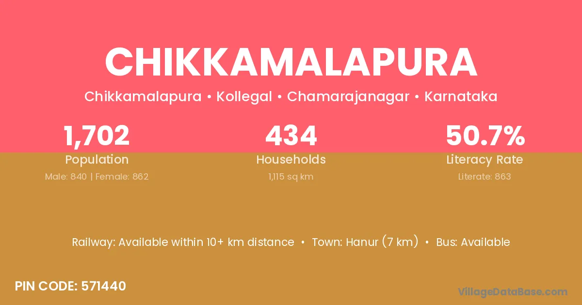 Hanur (7 km) is the nearest town to Chikkamalapura village for major economic activities and is located approximately 7 km away.