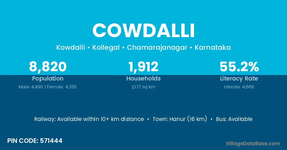Hanur (16 km) is the nearest town to Cowdalli village for major economic activities and is located approximately 16 km away.