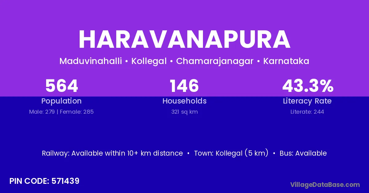 Kollegal (5 km) is the nearest town to Haravanapura village for major economic activities and is located approximately 5 km away.