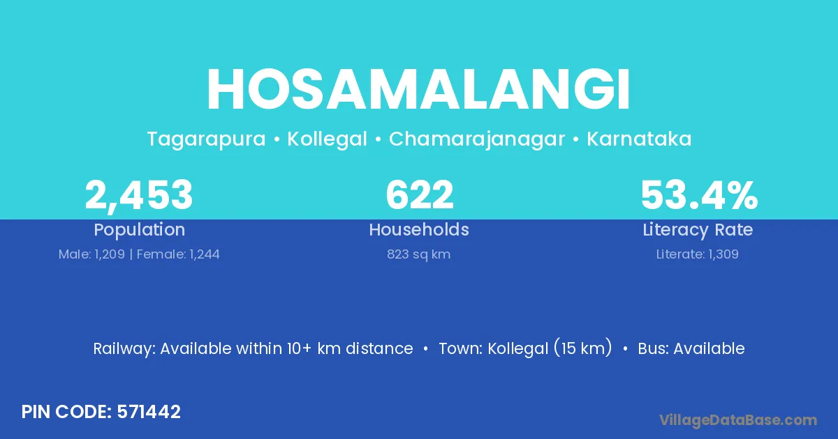 Kollegal (15 km) is the nearest town to Hosamalangi village for major economic activities and is located approximately 15 km away.