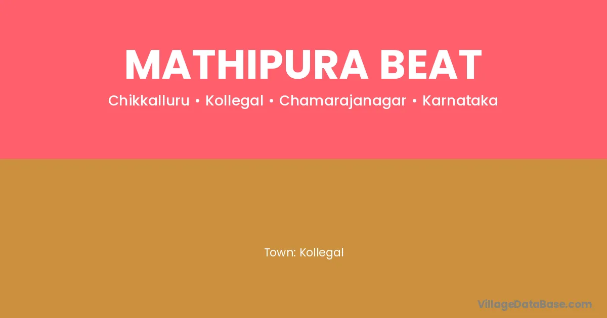 Mathipura Beat village is located in the Kollegal Taluka of the Chamarajanagar district in Karnataka .