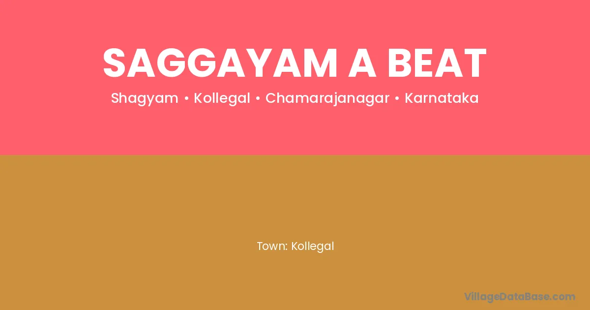Saggayam A Beat village is located in the Kollegal Taluka of the Chamarajanagar district in Karnataka .