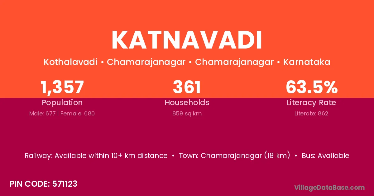 Yelandur (15 km) is the nearest town to Katnavadi village for major economic activities and is located approximately 15 km away.
