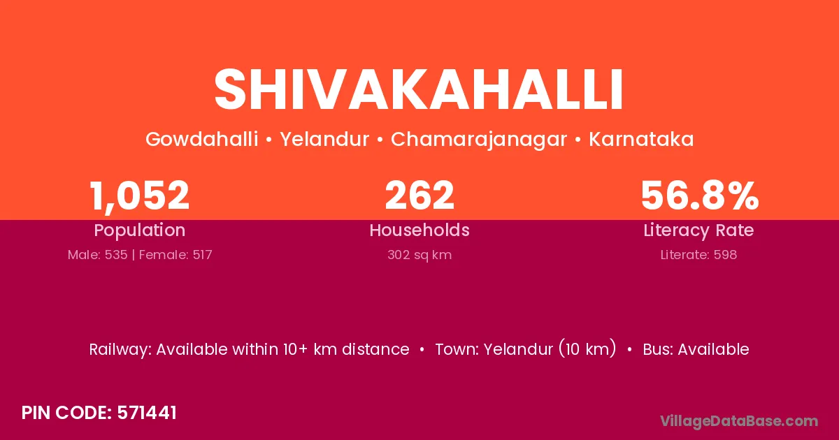 Yelandur (10 km) is the nearest town to Shivakahalli village for major economic activities and is located approximately 10 km away.