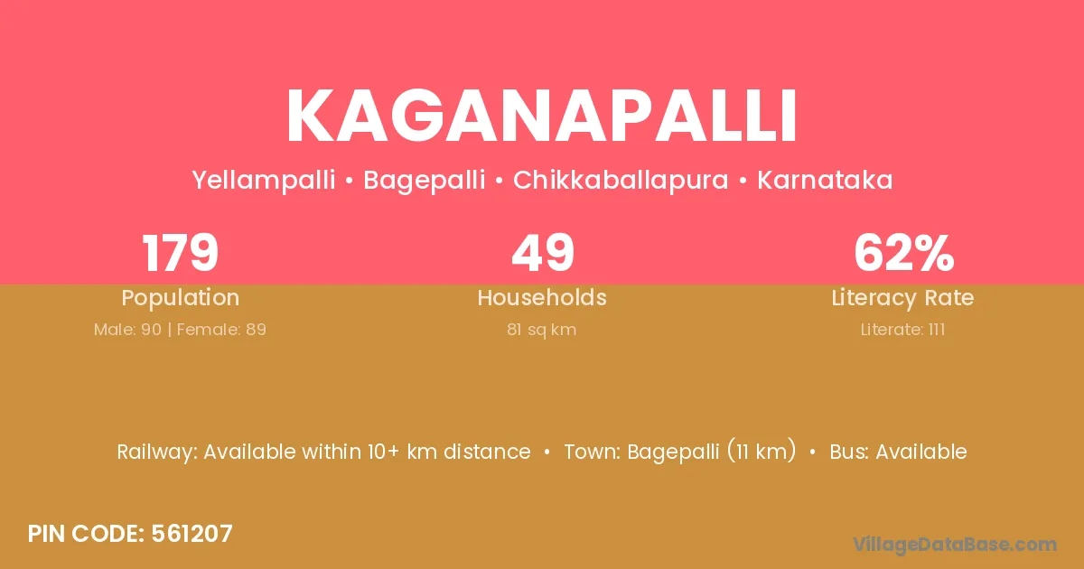 Bagepalli (11 km) is the nearest town to Kaganapalli village for major economic activities and is located approximately 11 km away.