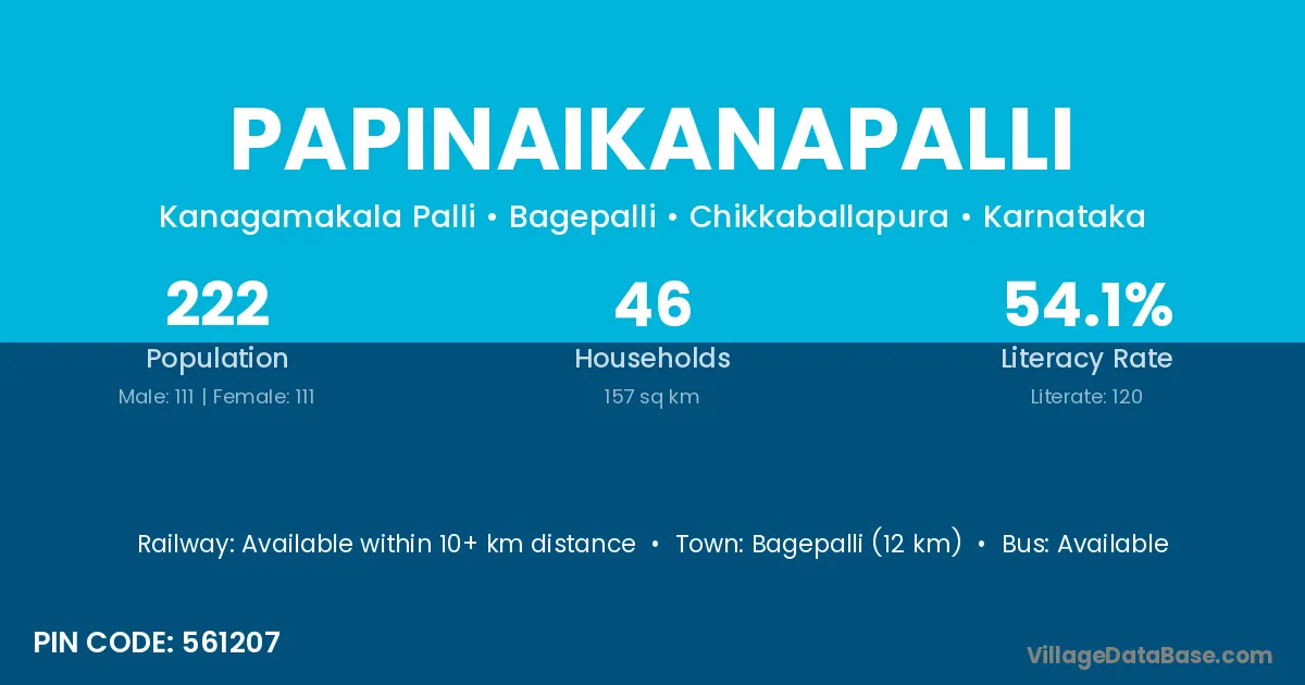Bagepalli (12 km) is the nearest town to Papinaikanapalli village for major economic activities and is located approximately 12 km away.