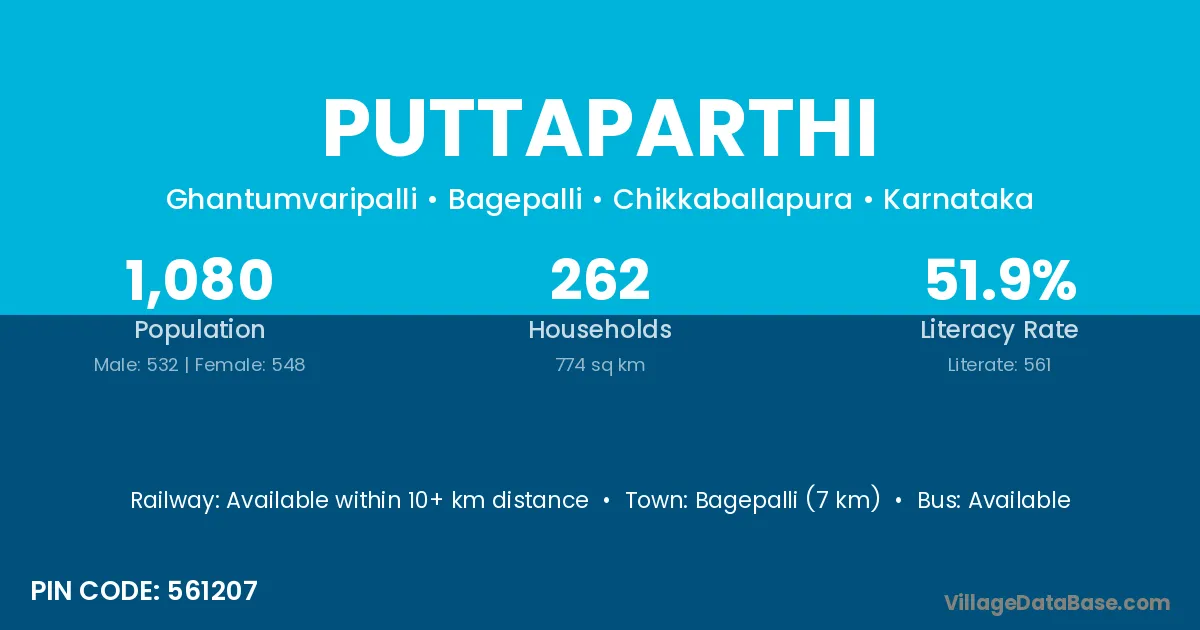 Puttaparthi village has a total population of 1,080 people, of which 532 are males and 548 are females.