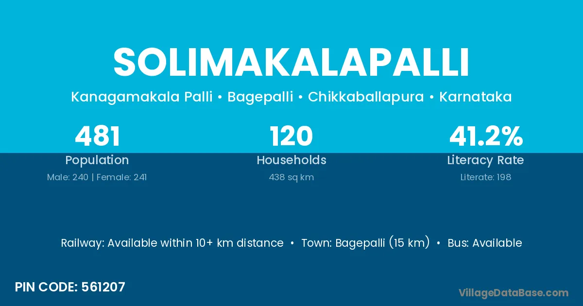 Bagepalli (15 km) is the nearest town to Solimakalapalli village for major economic activities and is located approximately 15 km away.
