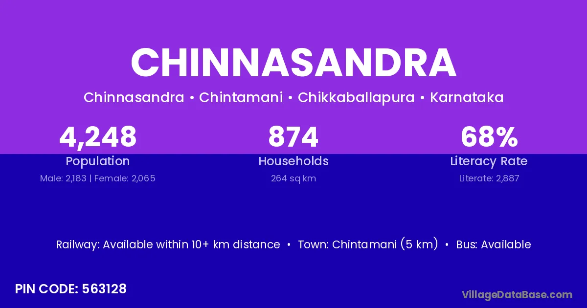 Chintamani (5 km) is the nearest town to Chinnasandra village for major economic activities and is located approximately 5 km away.