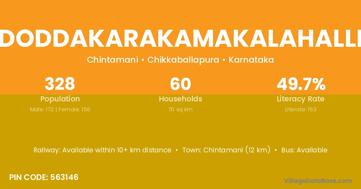 Chintamani (12 km) is the nearest town to Doddakarakamakalahalli village for major economic activities and is located approximately 12 km away.