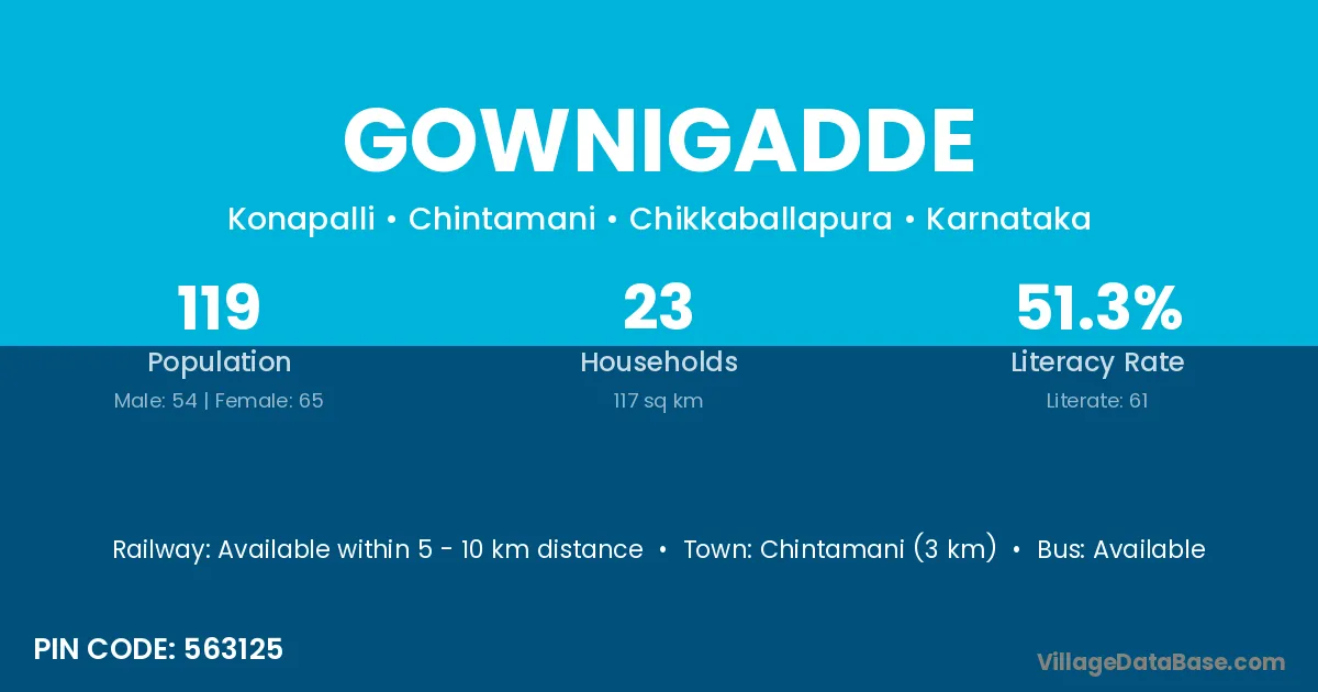 Chintamani (3 km) is the nearest town to Gownigadde village for major economic activities and is located approximately 3 km away.