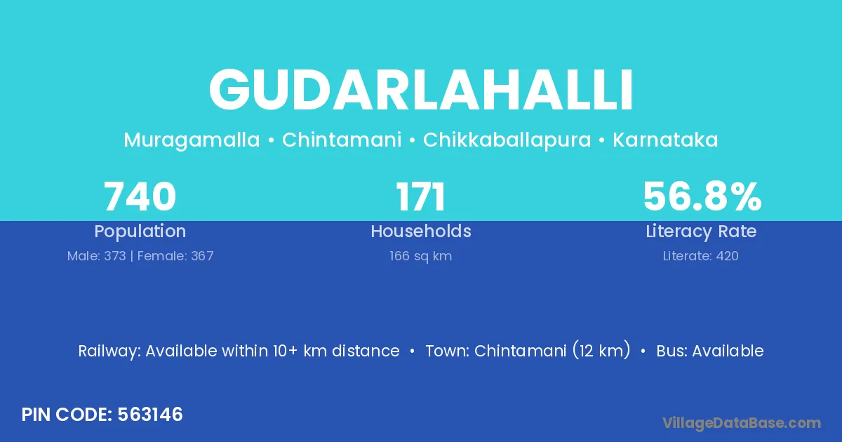 Chintamani (12 km) is the nearest town to Gudarlahalli village for major economic activities and is located approximately 12 km away.