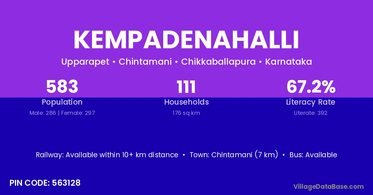 Chintamani (7 km) is the nearest town to Kempadenahalli village for major economic activities and is located approximately 7 km away.