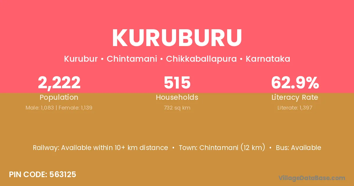 Chintamani (12 km) is the nearest town to Kuruburu village for major economic activities and is located approximately 12 km away.