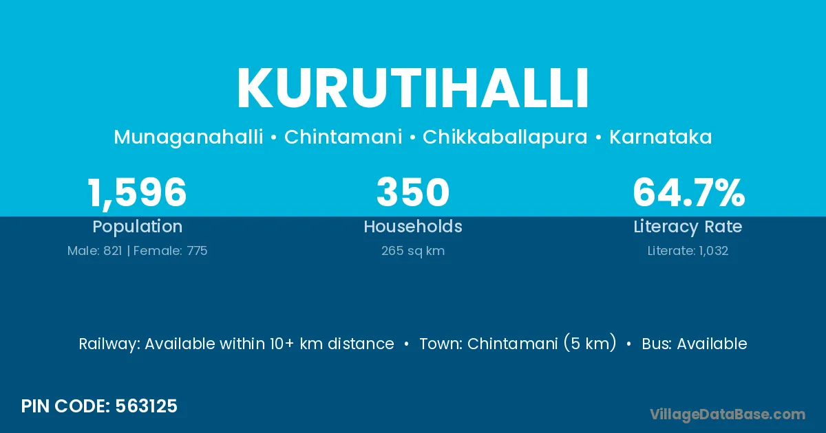 Chintamani (5 km) is the nearest town to Kurutihalli village for major economic activities and is located approximately 5 km away.